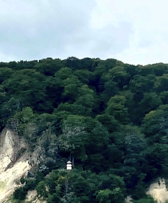 Im Sommer 2024 machte meine Freundin Margit Lentz eine Bootstour entlang der Küste Rügens und stellte mir das Foto des Türmchens von der Wasserseite aus zur Verfügung.