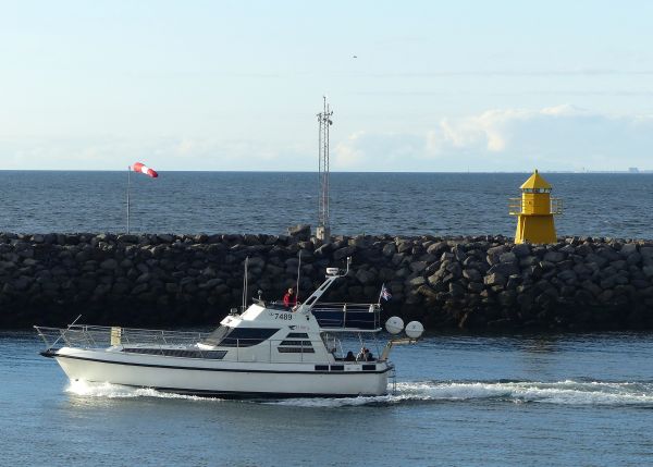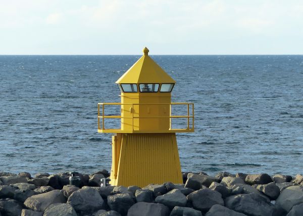 Bei der Einfahrt in den Hafen von Reykjavik begrüßte uns dieses kleine Leuchtfeuer, der Leuchtturm Skarfargath.